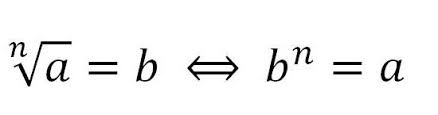 La raíz n-ésima de a es igual a b; si y solo sí b elevado a la n es igual a a.